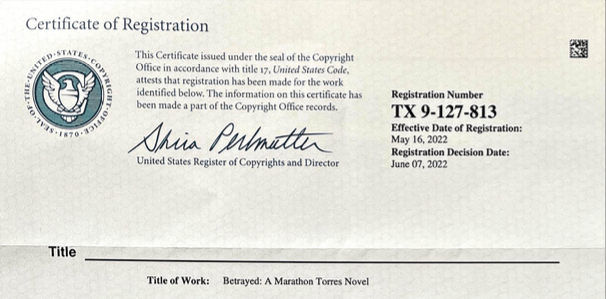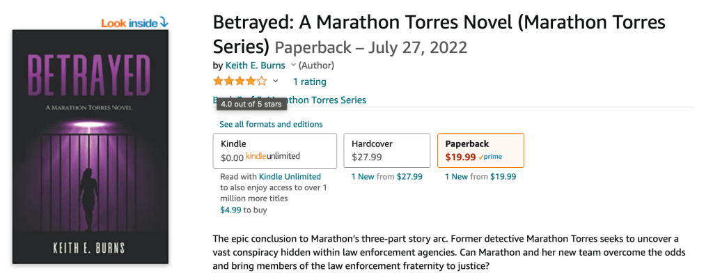 To celebrate the release of Betrayed: A Marathon Torres Novel, I am offering the first two books for FREE (ebook version) on Amazon Kindle. This is a limited time event. Get your free copies today!