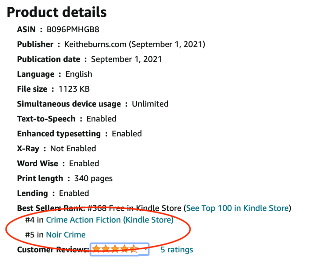 Today, Abandoned reached #4 in Crime Action Fiction genre. In a flooded genre with 1,000s of titles out there, Abandoned broke the top 5.