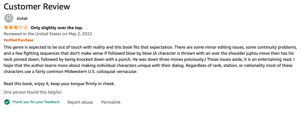The second thing that happened, a burst of reviews came in. Three total within days of this sales explosion. Now three doesn’t see like a lot, but I can truly say three is a big number based on how hard it is to get unsolicited reviews. These three reviews came in this morning. Two of them 5/5 stars, and one 4/5 stars. a complete win for my first novel!