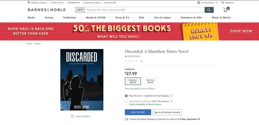 Finally, a gift. With thousands of copies sold to date and for a limited time, Discarded: A Marathon Torres Novel is FREE on amazon. Check it out, leave a review. Check out future sales and a Black Friday sale on Abandoned.