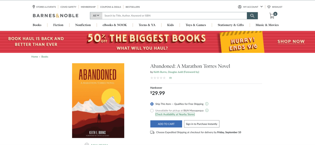 Abandoned: A Marathon Torres Novel is finally complete! Paperback and Ebook will be available September 1st. Limited Edition hardcover to follow shortly.